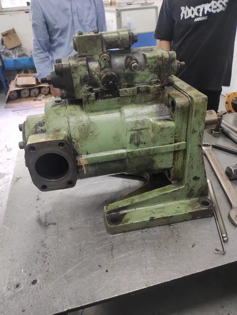 我們的維修師說(shuō):第一,液壓泵磨損嚴(yán)重。嚴(yán)重泄漏時(shí)在泵在低速度;高速運(yùn)行,泵的壓力略有增加,但由于泵的磨損和消耗,容積效率顯著下降,很難達(dá)到額定壓力。液壓泵經(jīng)常長(zhǎng)時(shí)間工作,導(dǎo)致磨損和高油溫上升,結(jié)果穿液壓元件和密封老化、損壞,密封能力的損失,液壓油變質(zhì),導(dǎo)致失敗。